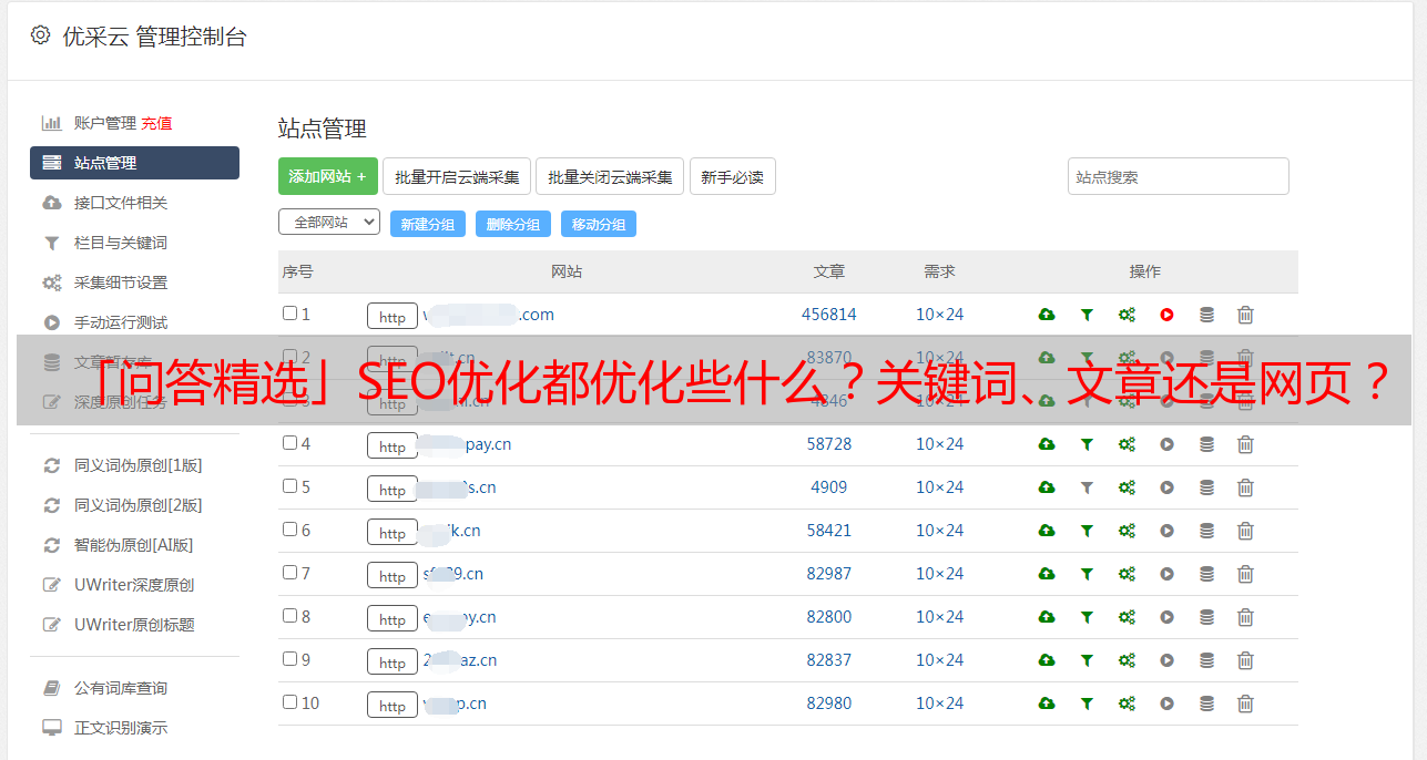 优采云 发布时间: 2022-06-07 07:08「问答精选」SEO优化都优化些什么?关键词、文章还是网页?