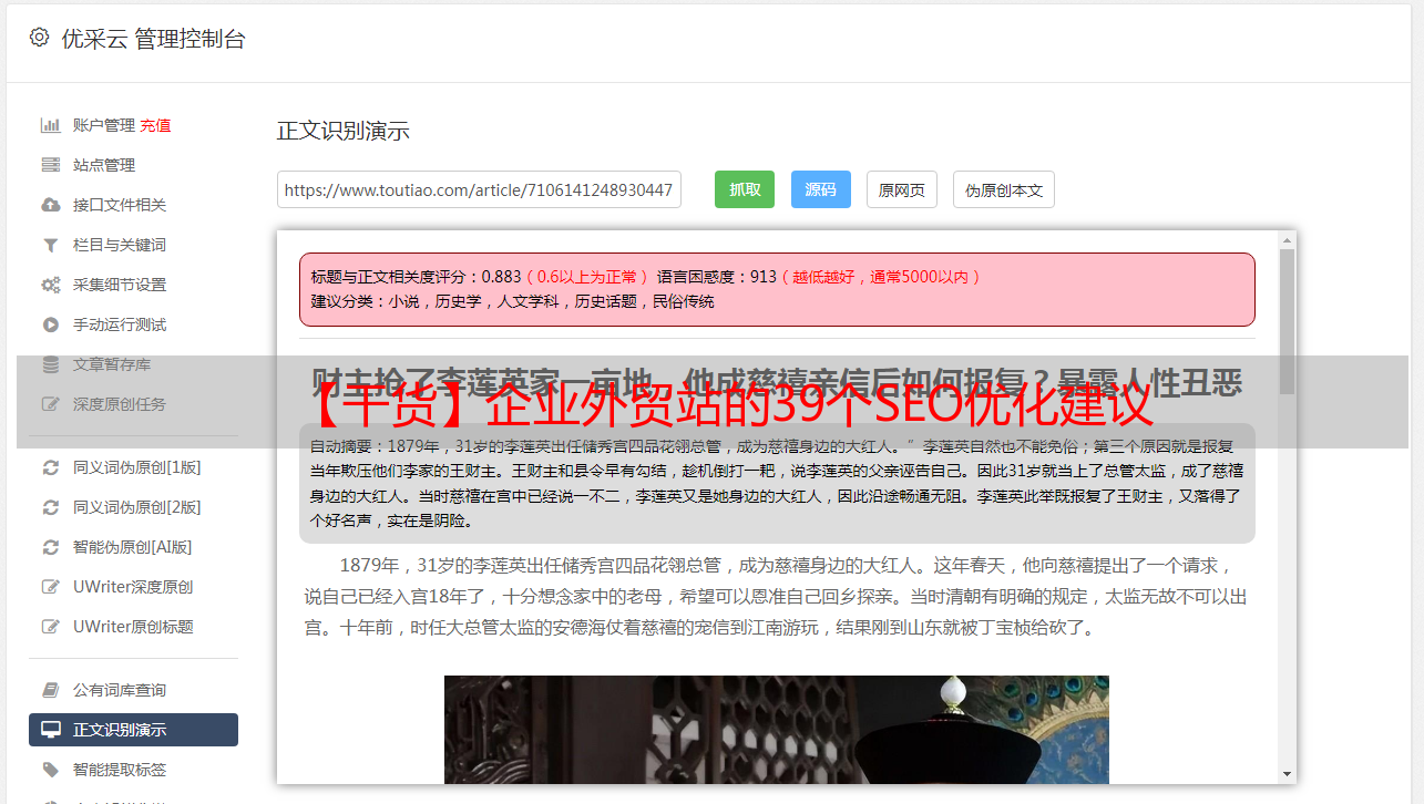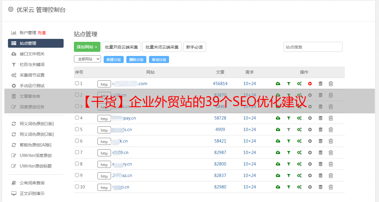 优采云 发布时间: 2022-06-07 11:05【干货】企业外贸站的39个SEO优化建议