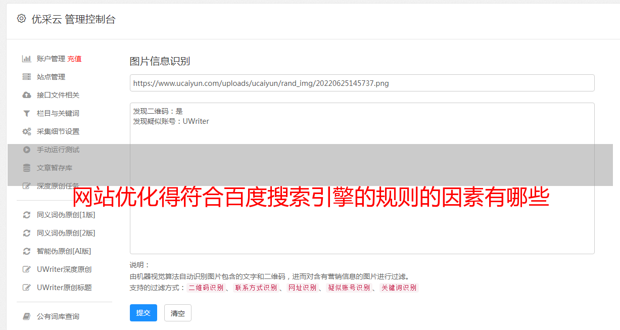 写了百度网站的搜索引擎优化原创 文章。 网站的内容主要是文章的内容。一般图片和视频的内容只是很小的一部分。但这也取决于行业。相秀网站的内容主要是图片,并辅以文字网站。对于百度搜索引擎来说,这是一个不友好的表现。因为百度搜索引擎只能识别文本内容,而不能识别图片和视频内容。如果您以图片的形式盲目显示网站,则必须设置一列文本内容来弥补这一不足。