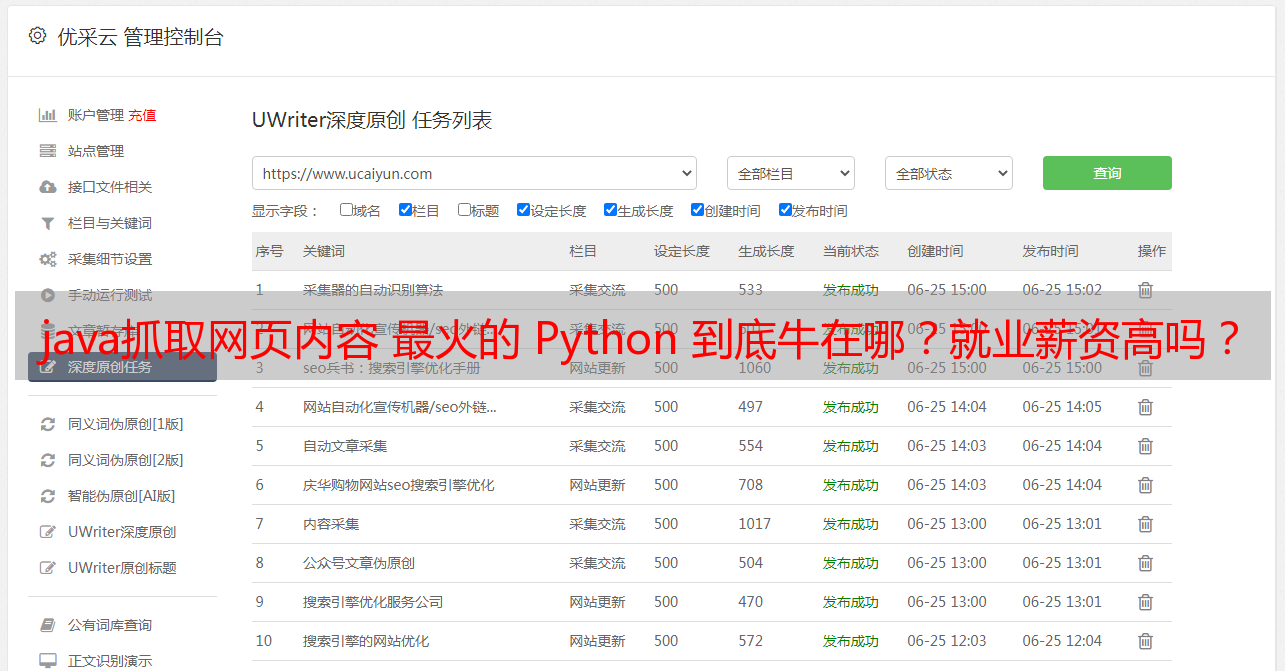 优采云 发布时间: 2022-06-14 10:10java抓取网页内容 最火的 Python 到底牛在哪?就业薪资高吗?