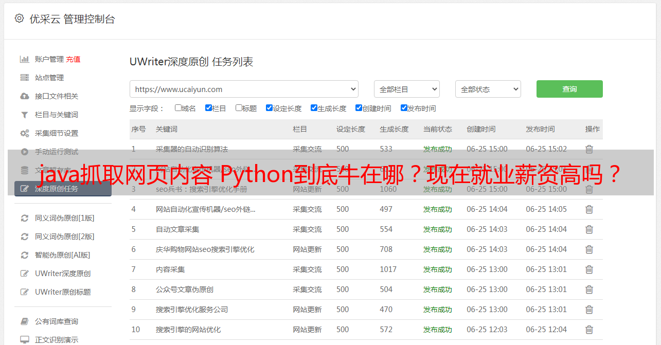 优采云 发布时间: 2022-06-14 10:20java抓取网页内容 Python到底牛在哪?现在就业薪资高吗?