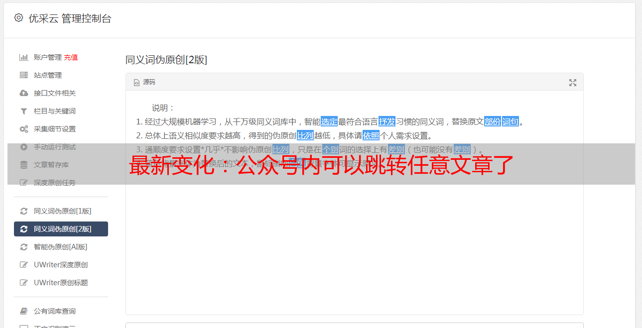 优采云 发布时间: 2022-06-15 20:33最新变化:公众号内可以跳转任意文章了