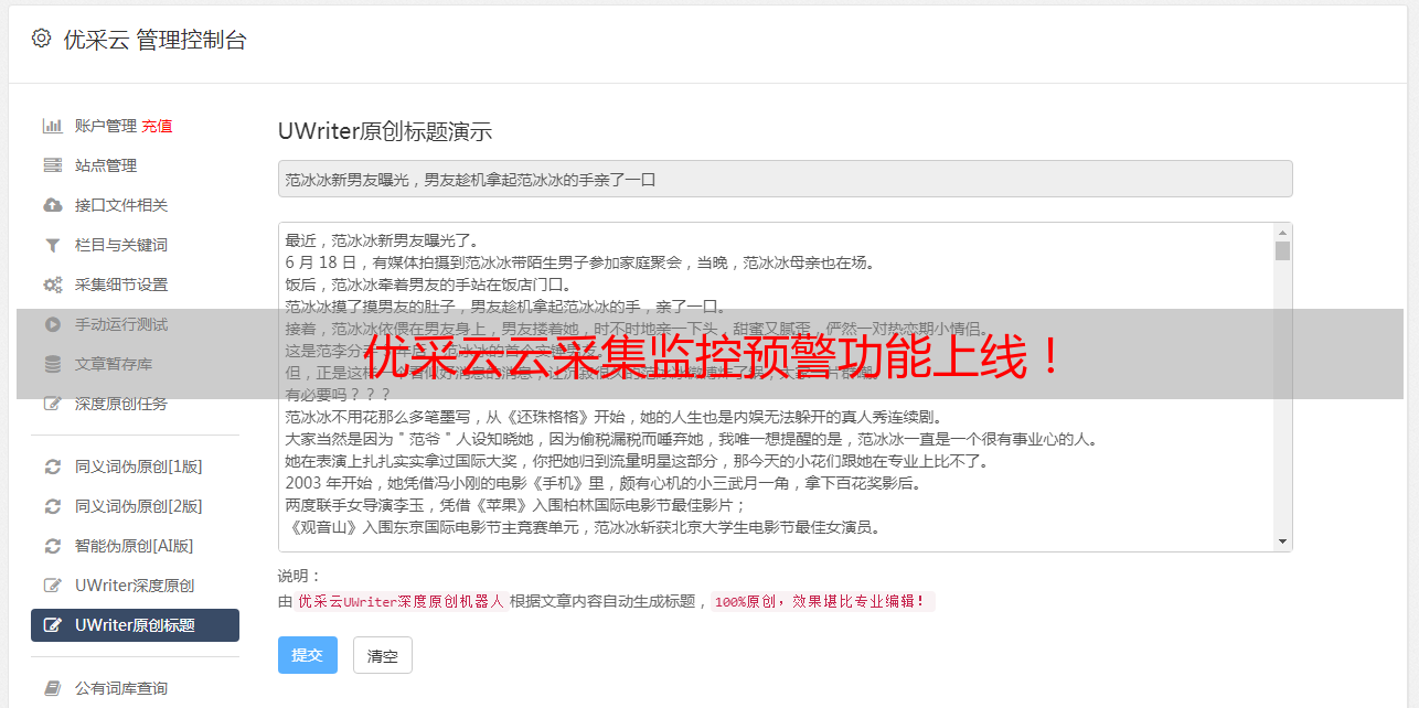 经过多个版本内测,优采云云采集监控预警功能已经正式上线!