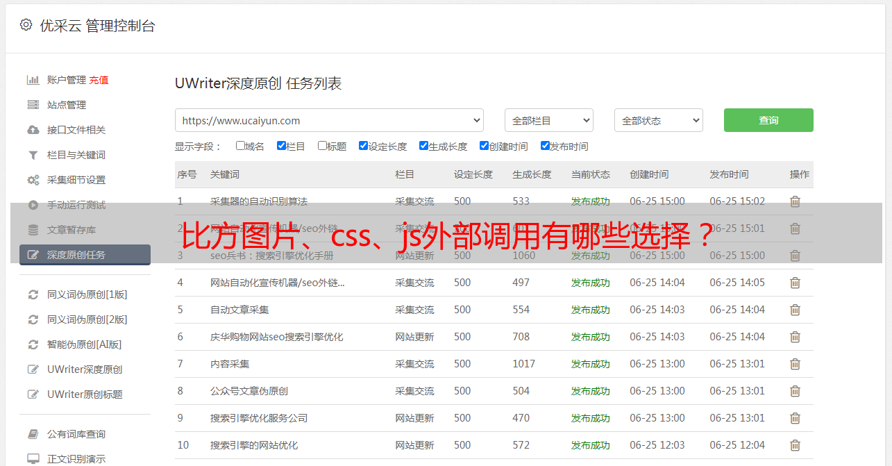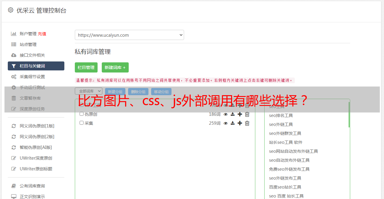 优采云 发布时间: 2021-05-21 02:01比方图片、css、js外部调用有哪些选择?