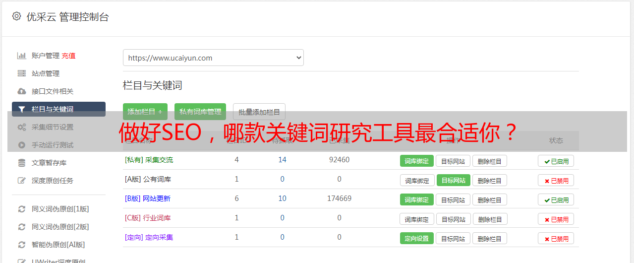 优采云 发布时间: 2022-06-17 19:17做好SEO,哪款关键词研究工具最合适你?
