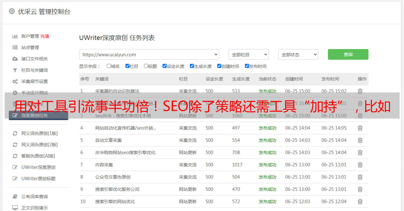 优采云 发布时间: 2022-06-17 20:37用对工具引流事半功倍!SEO除了策略还需工具“加持”,比如这些……