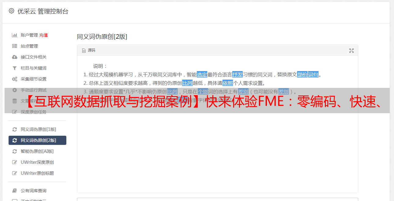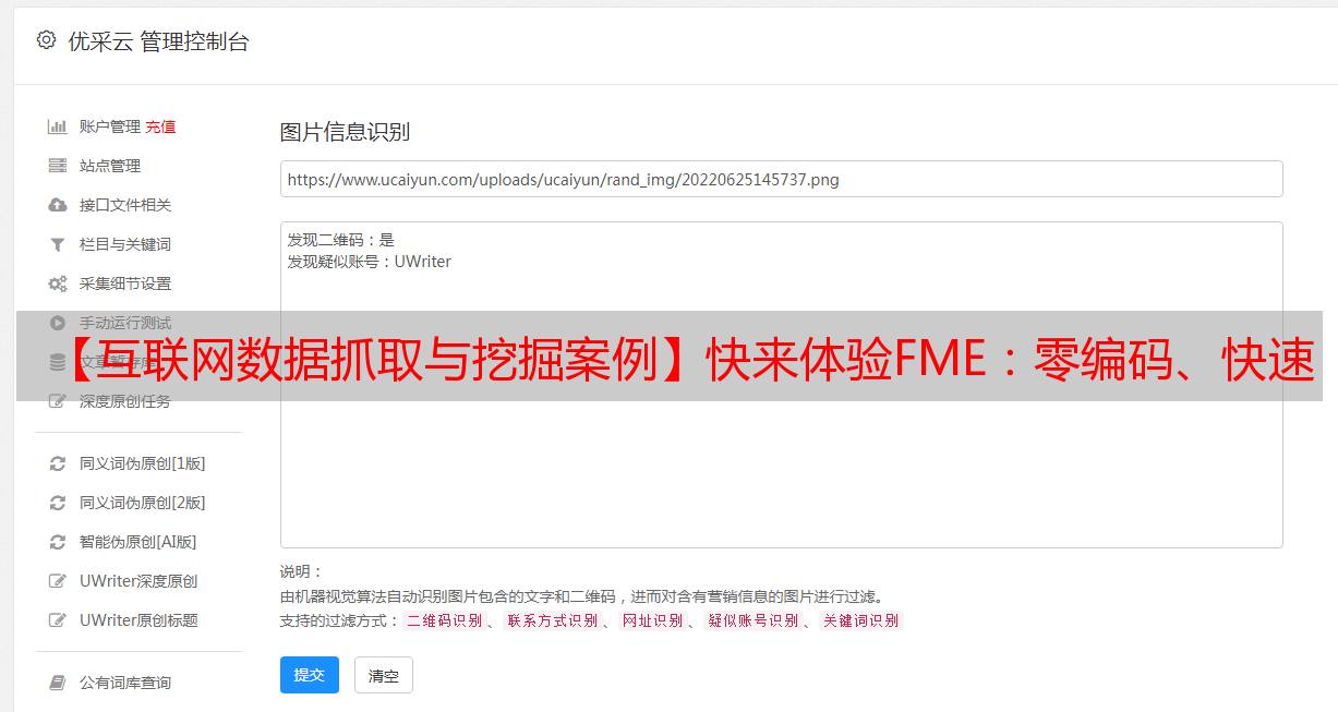 优采云 发布时间: 2022-06-18 03:50【互联网数据抓取与挖掘案例】快来体验FME:零编码、快速、自由获取数据