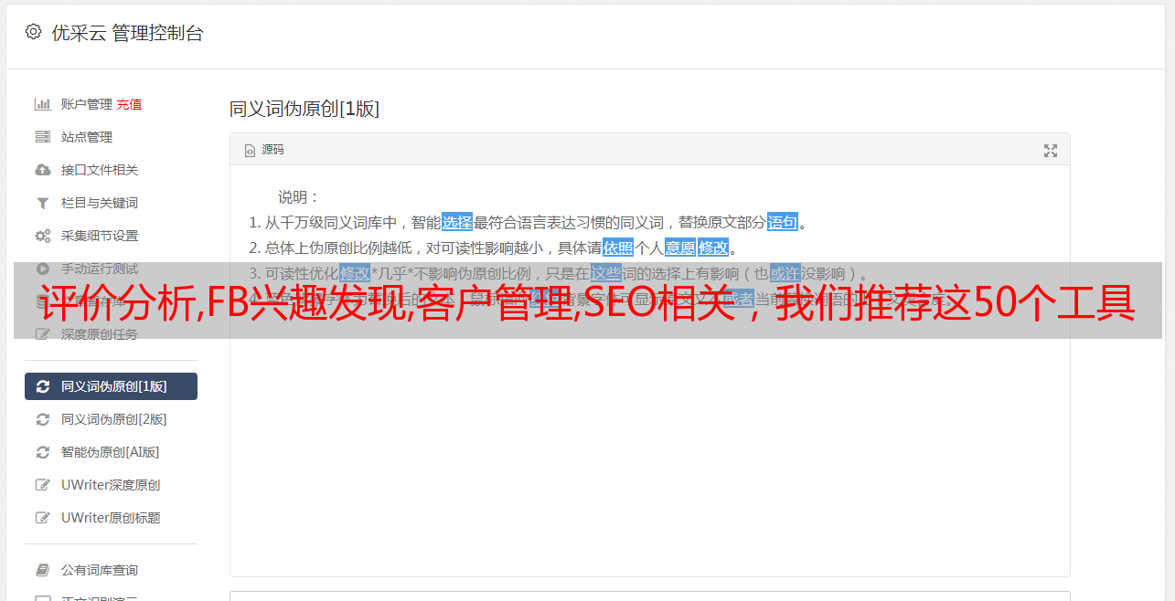 优采云 发布时间: 2022-06-18 04:40评价分析,FB兴趣发现,客户管理,SEO相关,我们推荐这50个工具
