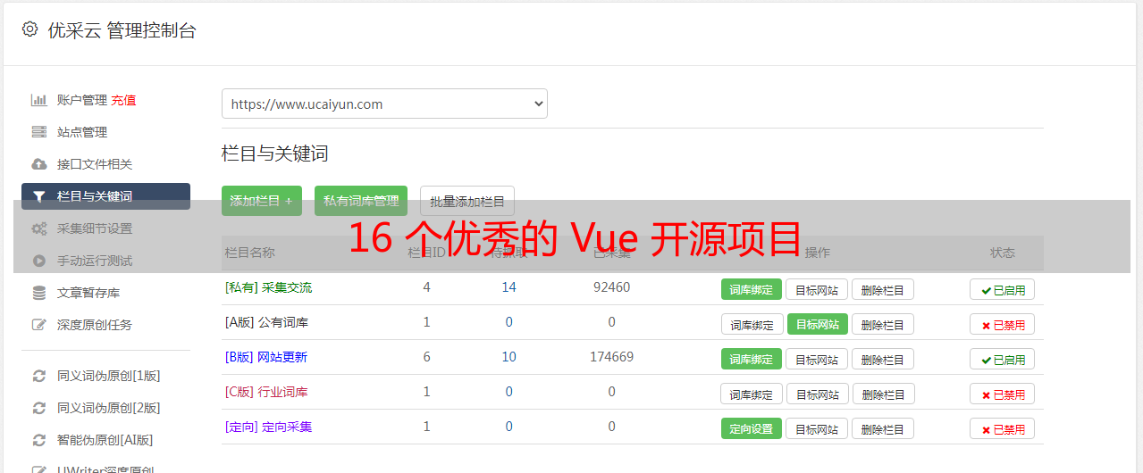 优采云 发布时间: 2022-06-18 09:5416 个优秀的 Vue 开源项目