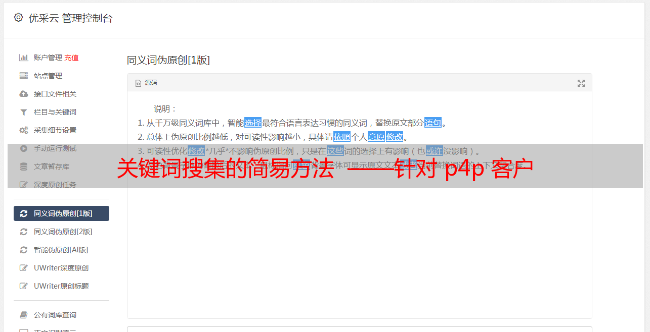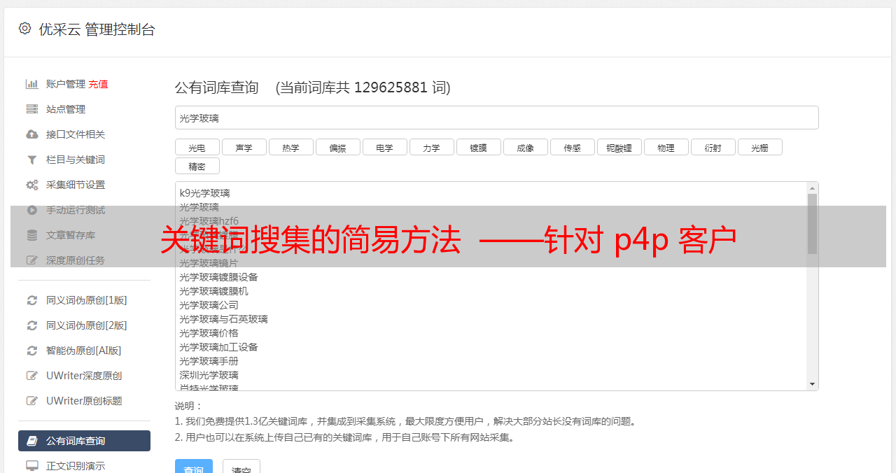 优采云 发布时间: 2022-06-18 10:43关键词搜集的简易方法 ——针对 p4p 客户