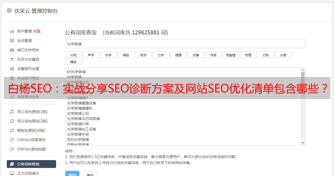 优采云 发布时间: 2022-06-18 10:45白杨SEO:实战分享SEO诊断方案及网站SEO优化清单包含哪些?