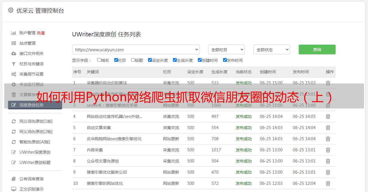 优采云 发布时间: 2022-06-18 12:20如何利用Python网络爬虫抓取微信朋友圈的动态(上)
