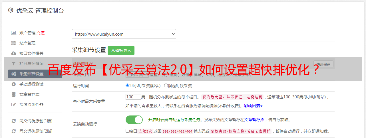 百度发布【优采云算法2.0】如何设置超快排优化?