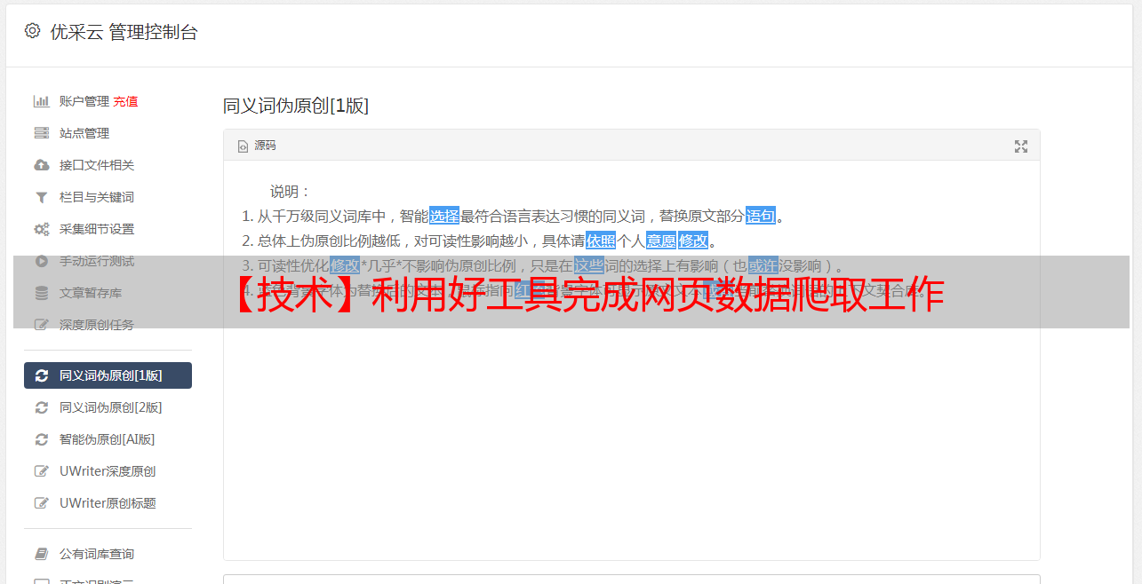 爬高质量数据对很多人来说一直是一个比较难的问题,用 python 或其他语言爬自然无可厚非,但如果从一个普通人(非程序员)来讲,还是需要一定的积累和门槛的。今天我就来讲讲如何将这个门槛降低,利用好的工具自然会让我们事半功倍。今天给大家介绍两个工具:优采云数据采集器(爬网页数据);XGeocoding(爬经纬度数据)。(特此申明:这里不做任何广告,大家有更好的工具也可以推荐,个人只是用过这两个工具,比较容易操作上手,仅此而已)