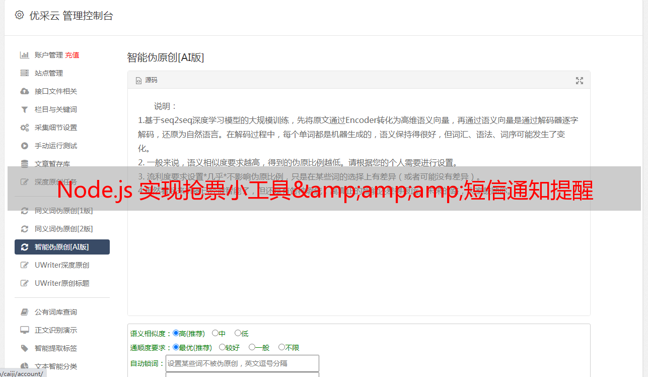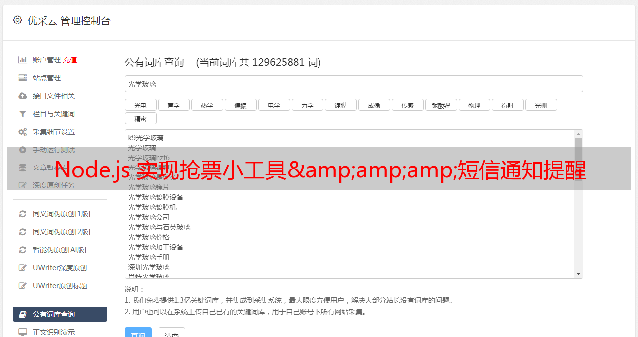 优采云 发布时间: 2022-06-19 00:24Node.js 实现抢票小工具&短信通知提醒