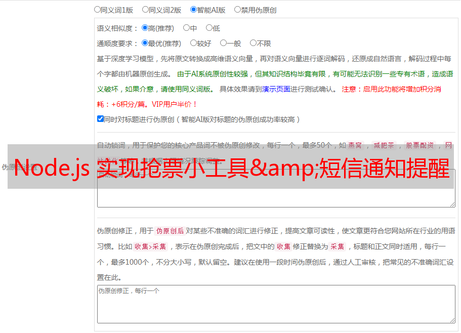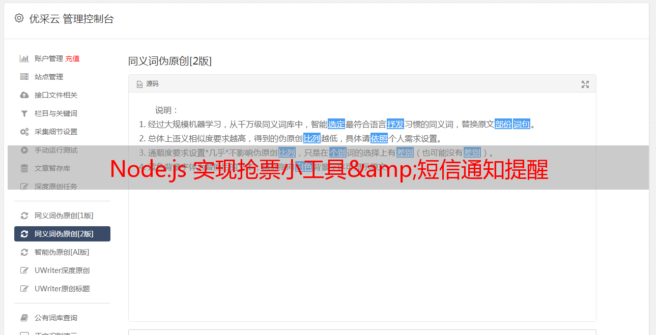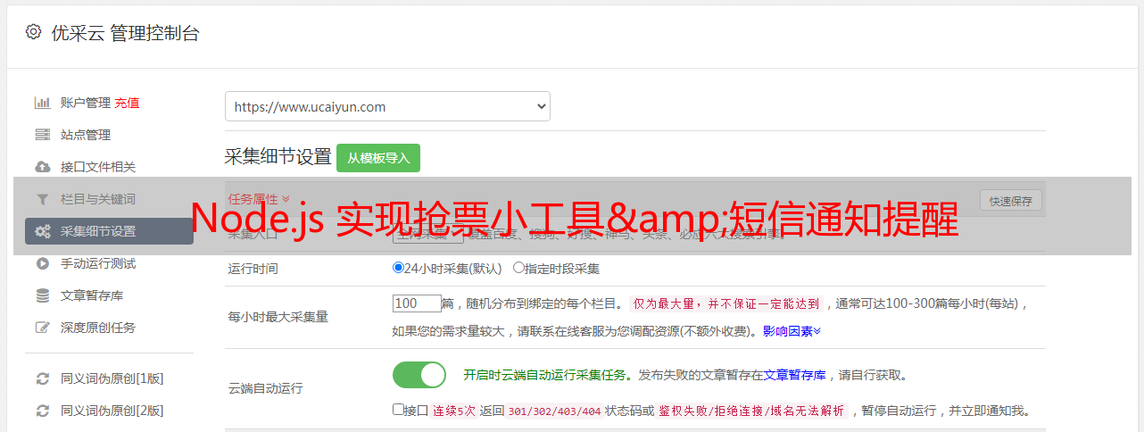 优采云 发布时间: 2022-06-19 00:29Node.js 实现抢票小工具&短信通知提醒