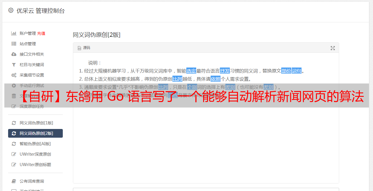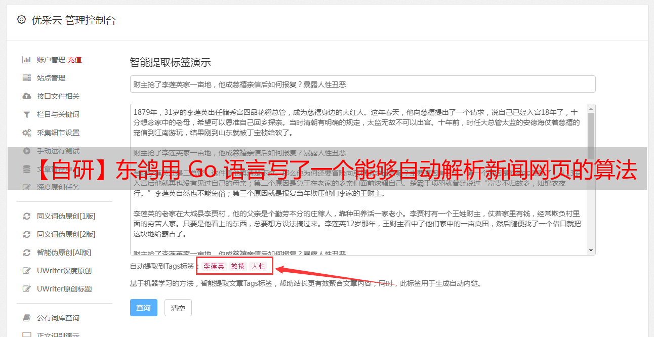 优采云 发布时间: 2022-06-19 01:34【自研】东鸽用 Go 语言写了一个能够自动解析新闻网页的算法