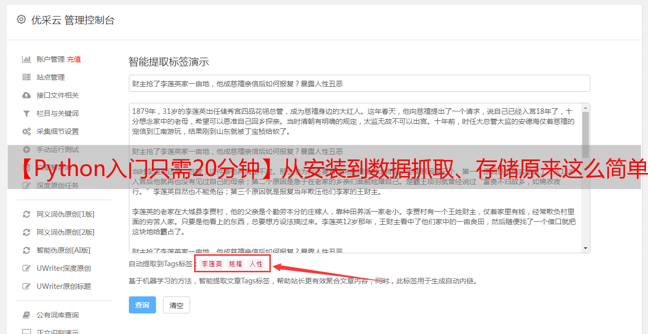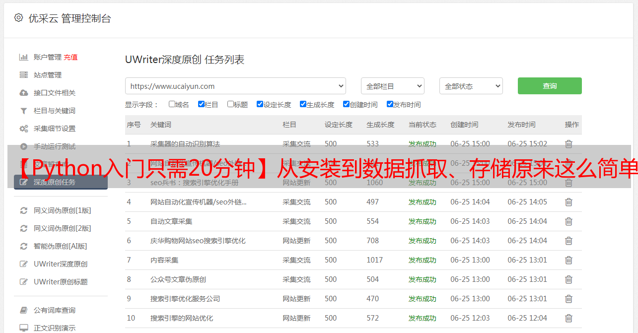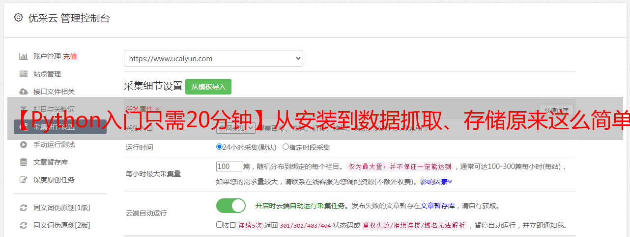 优采云 发布时间: 2022-06-19 05:55【Python入门只需20分钟】从安装到数据抓取、存储原来这么简单