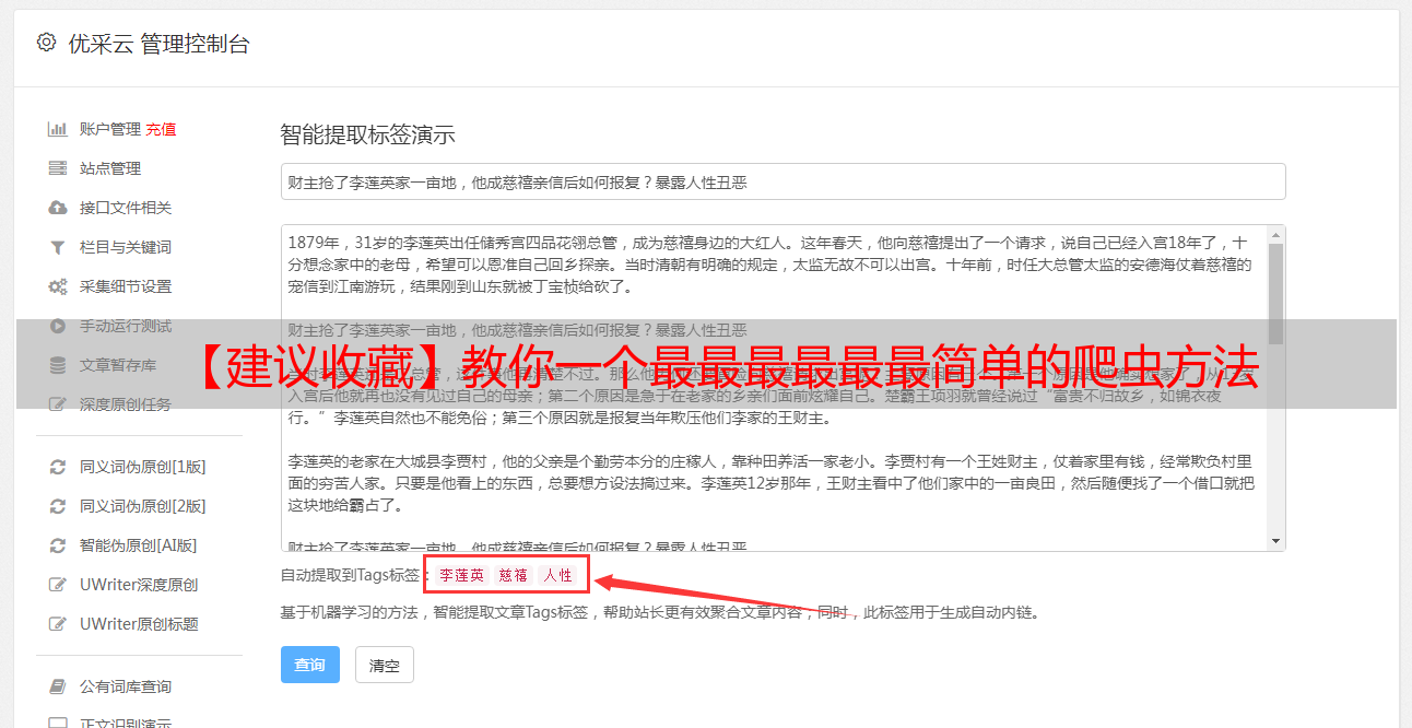 优采云 发布时间: 2022-06-19 15:30【建议收藏】教你一个最最最最最最简单的爬虫方法