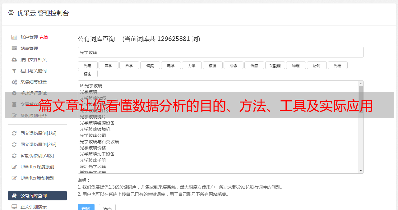 优采云 发布时间: 2022-06-19 19:34一篇文章让你看懂数据分析的目的、方法、工具及实际应用