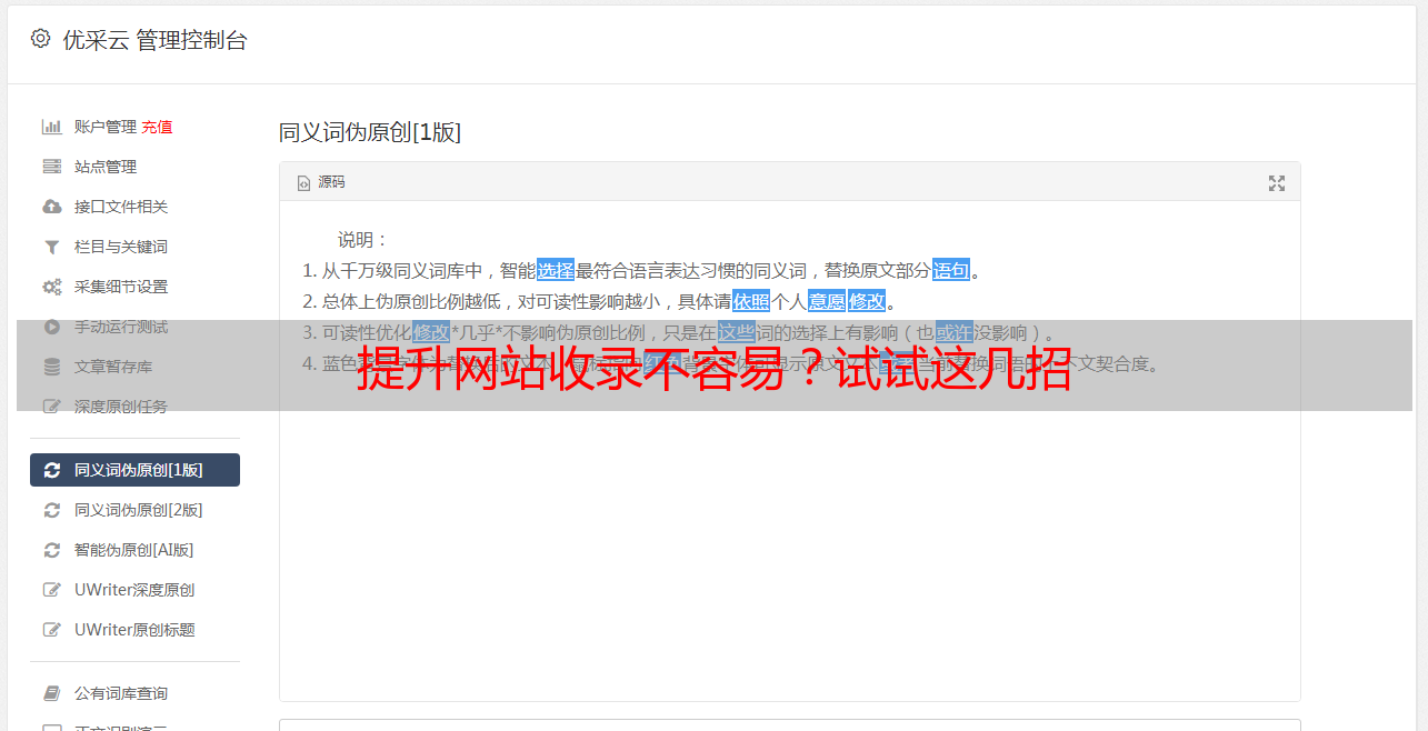 优采云 发布时间: 2022-06-20 11:26提升网站收录不容易?试试这几招