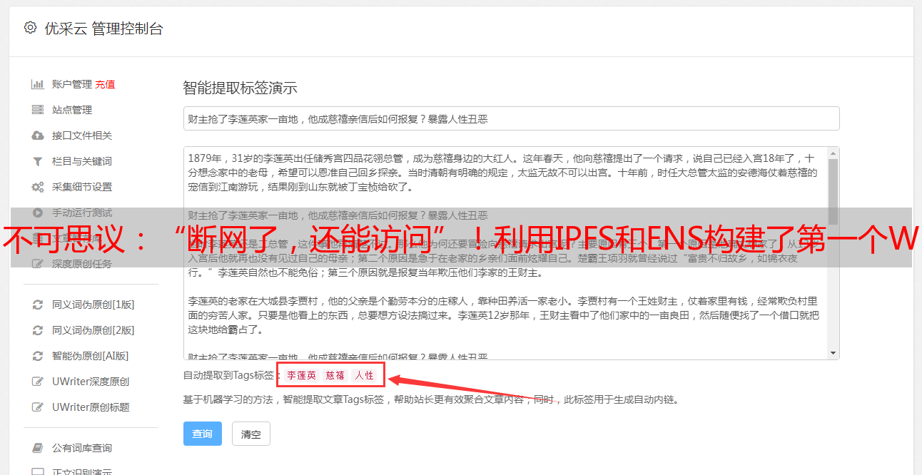 优采云 发布时间: 2022-06-20 19:51不可思议:“断网了,还能访问”!利用IPFS和ENS构建了第一个Web3.0网站