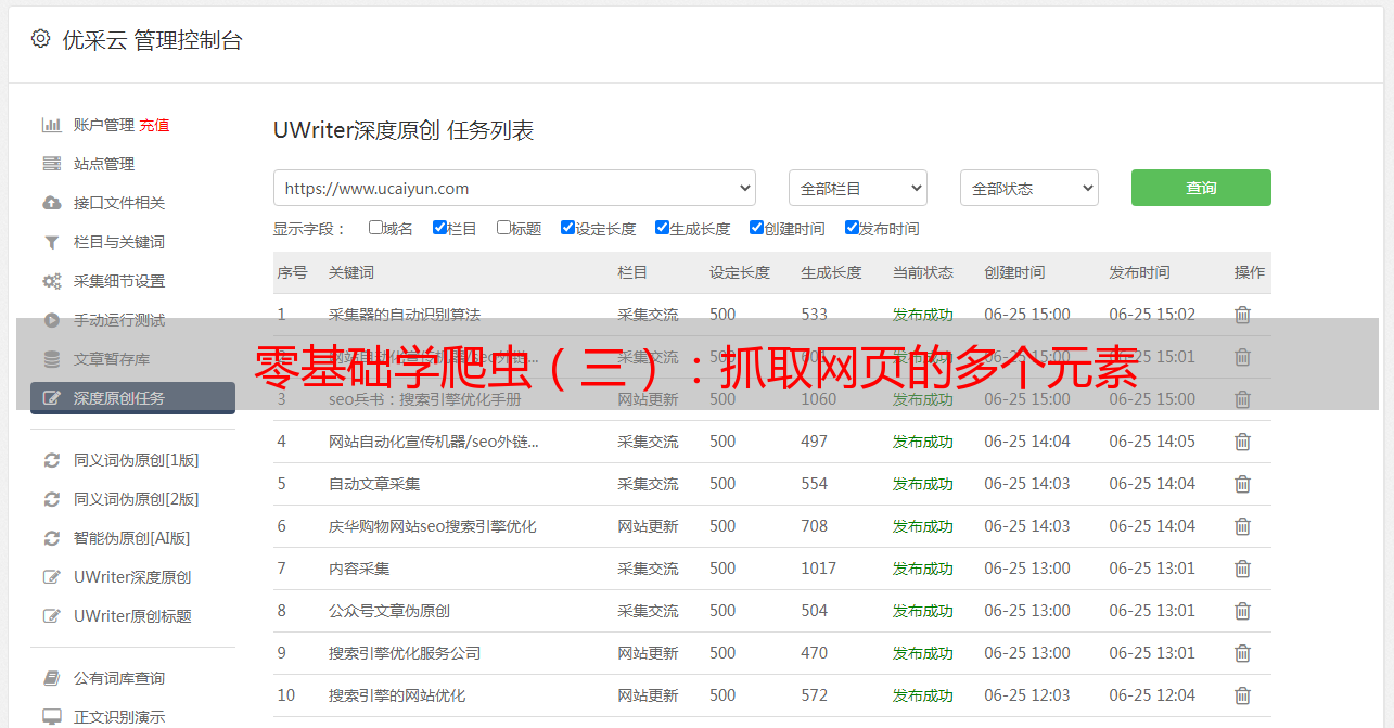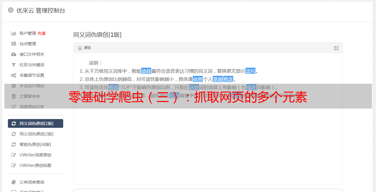 优采云 发布时间: 2022-06-21 01:31零基础学爬虫(三):抓取网页的多个元素