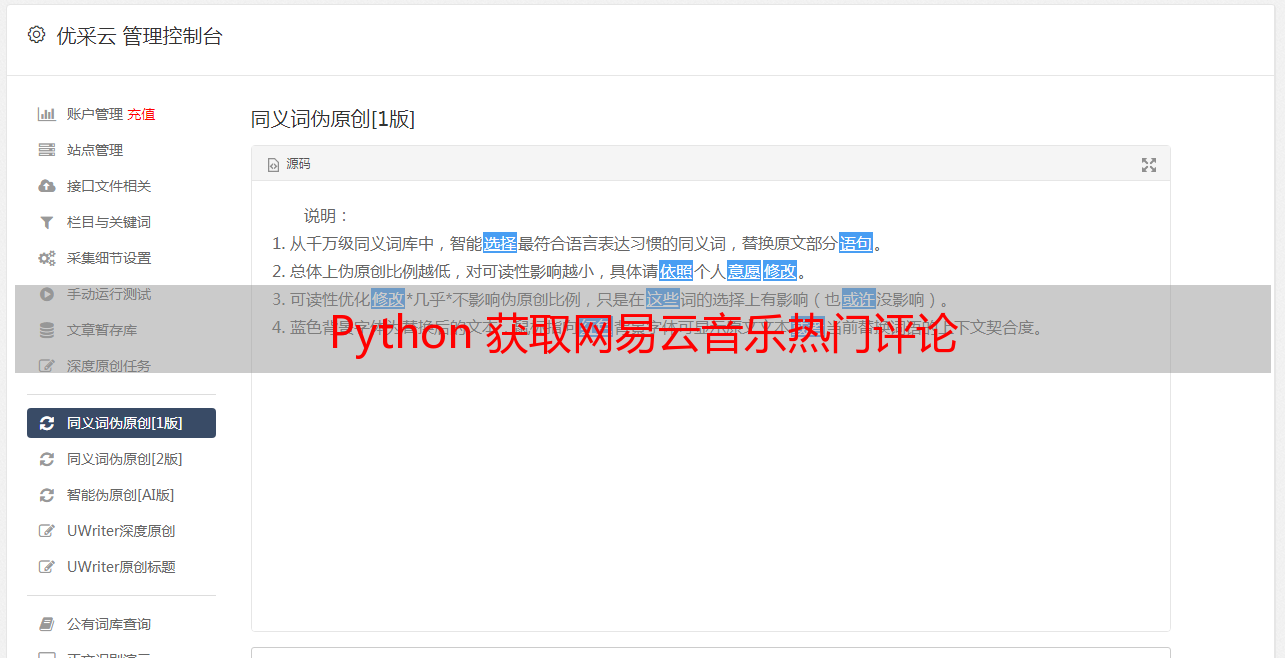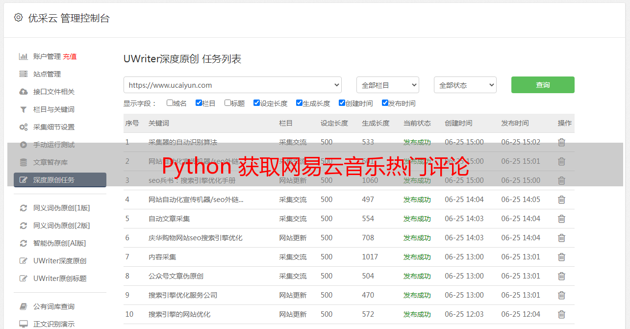 优采云 发布时间: 2022-06-21 04:27Python 获取网易云音乐热门评论