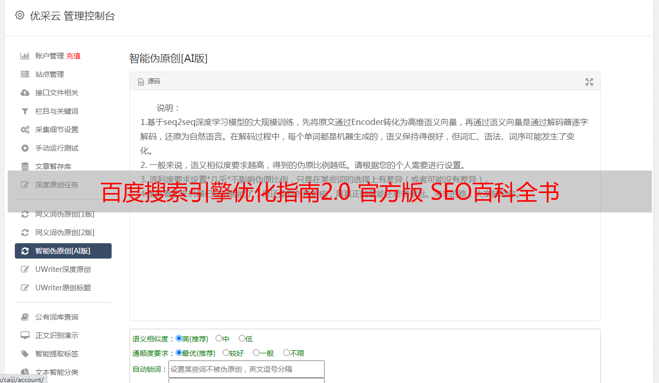 优采云 发布时间: 2022-06-23 16:07百度搜索引擎优化指南2.0 官方版 SEO百科全书