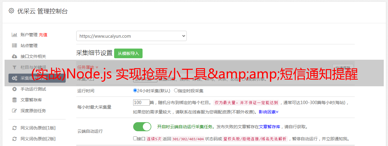 优采云 发布时间: 2022-06-25 08:35(实战)Node.js 实现抢票小工具&短信通知提醒