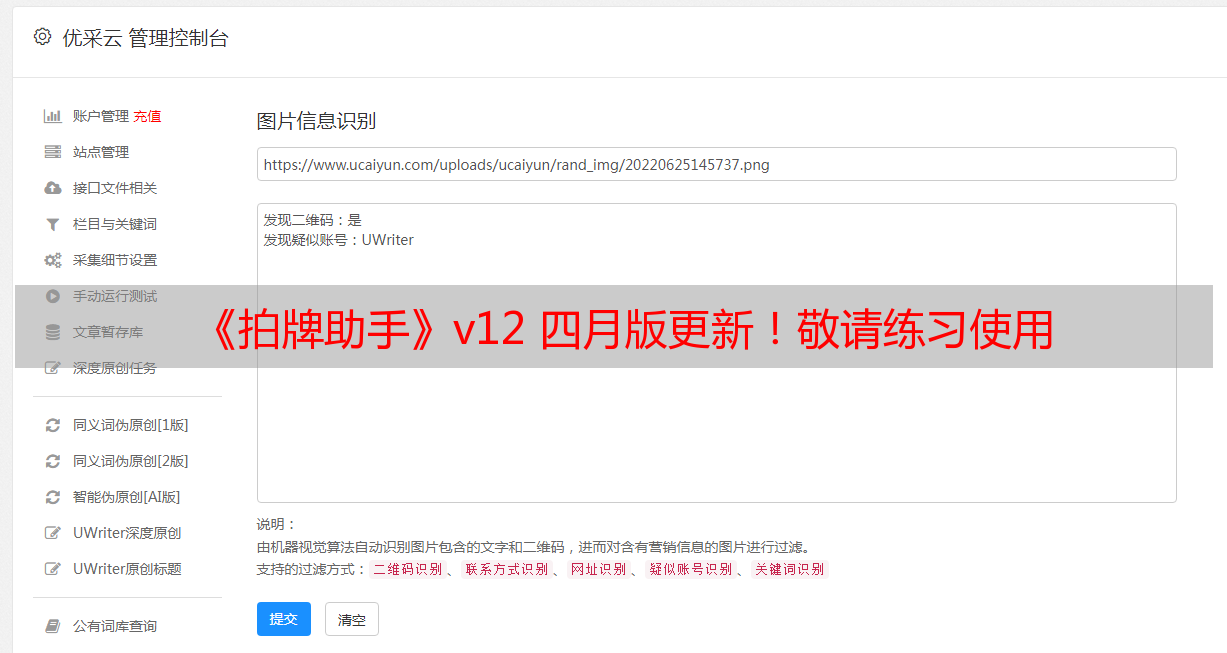 优采云 发布时间: 2022-06-28 04:00《拍牌助手》v12 四月版更新!敬请练习使用