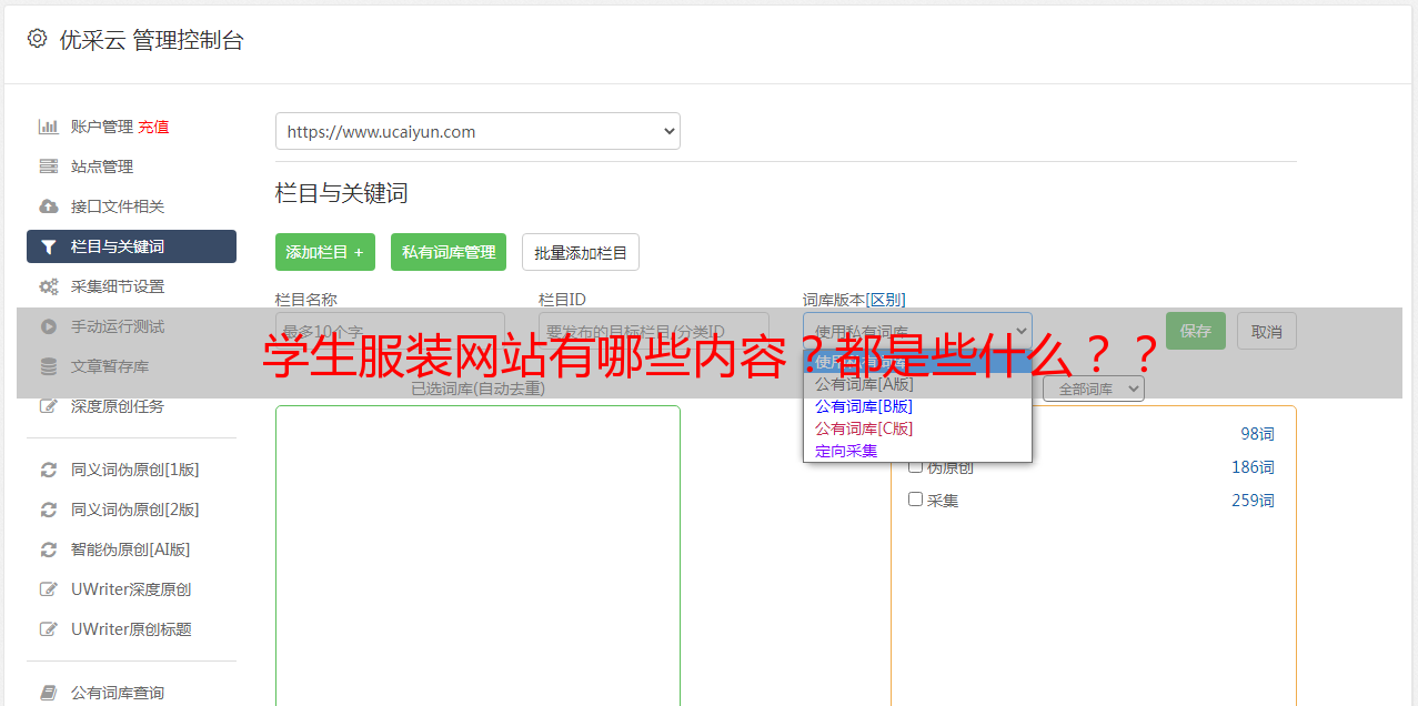 优采云 发布时间: 2022-06-28 20:00学生服装网站有哪些内容?都是些什么??