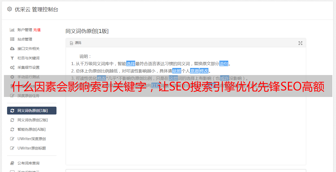 优采云 发布时间: 2022-06-29 20:47什么因素会影响索引关键字,让SEO搜索引擎优化先锋SEO高额你具体原因