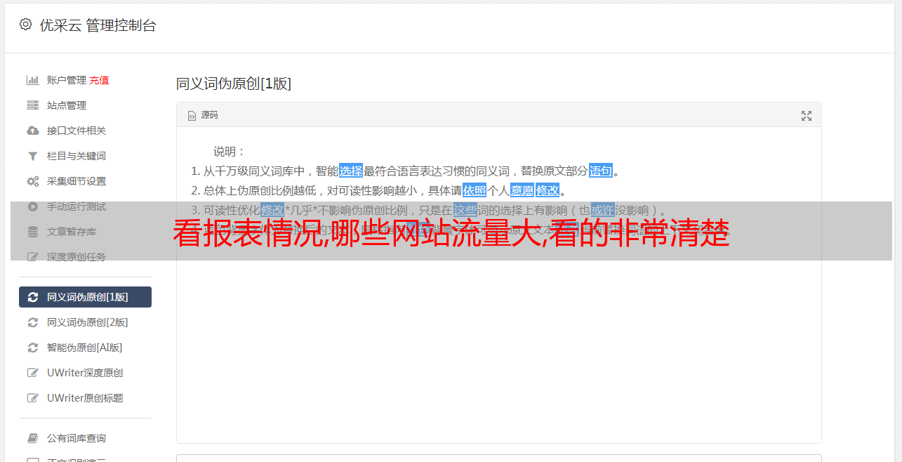 优采云 发布时间: 2022-07-01 20:01看报表情况,哪些网站流量大,看的非常清楚