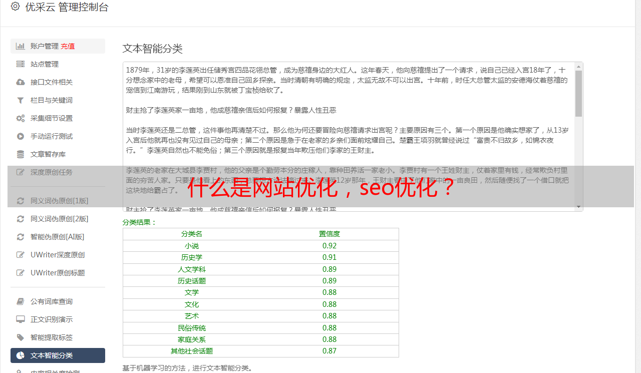 网站内容优化,什么是网站内容优化?网站内容优化怎么入手。网站内容优化真的只是写文章吗?每天发发软文就是内容优化吗?答案肯定是错误的,网站内容优化肯定是为了关键词排名,让网站内容得到更多的展现。为什么你每天发布的文章内容是没有排名没有网站收录的呢?你知道你网站的核心词是什么吗?网站的核心词-词频率是多少?搜索引擎对你的网站内容定位又是什么呢?这些都是有技巧在里面的。(详细参考以下图片)