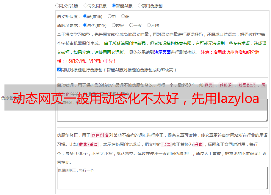 优采云 发布时间: 2022-07-08 06:02动态网页一般用动态化不太好,先用lazyload吗?