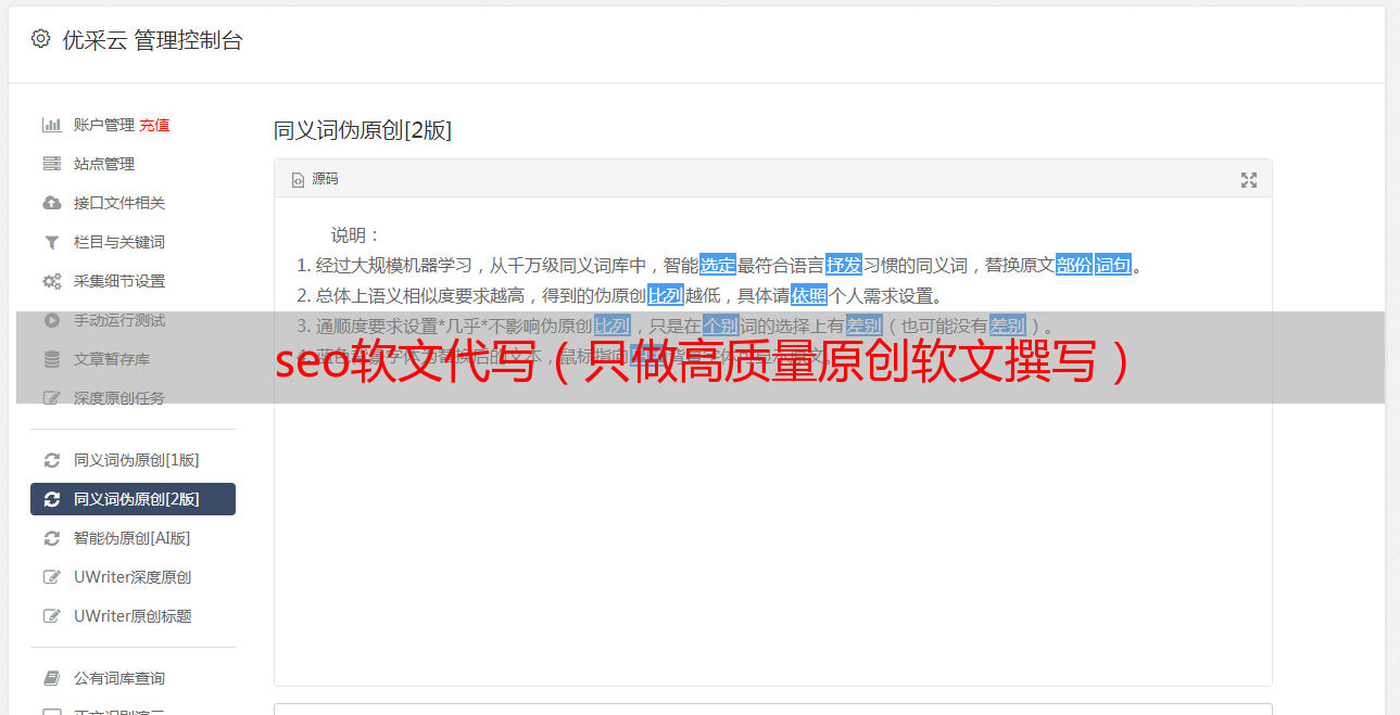 最后,一般来说,我们seo人认为原创文章的质量高于伪原创,但许多网站管理员不能继续提供新的原创文章,所以一些网站管理员将使用伪原创文章更新,我们网站管理员称这种伪原创文章为seo文章。这类文章符合搜索引擎的收集,无论是长尾关键词优化,还是全站优化都有更突出的好处。而且基本上没有创建技术要求,所以一些网站管理员会选择这种方法来做这个站。
