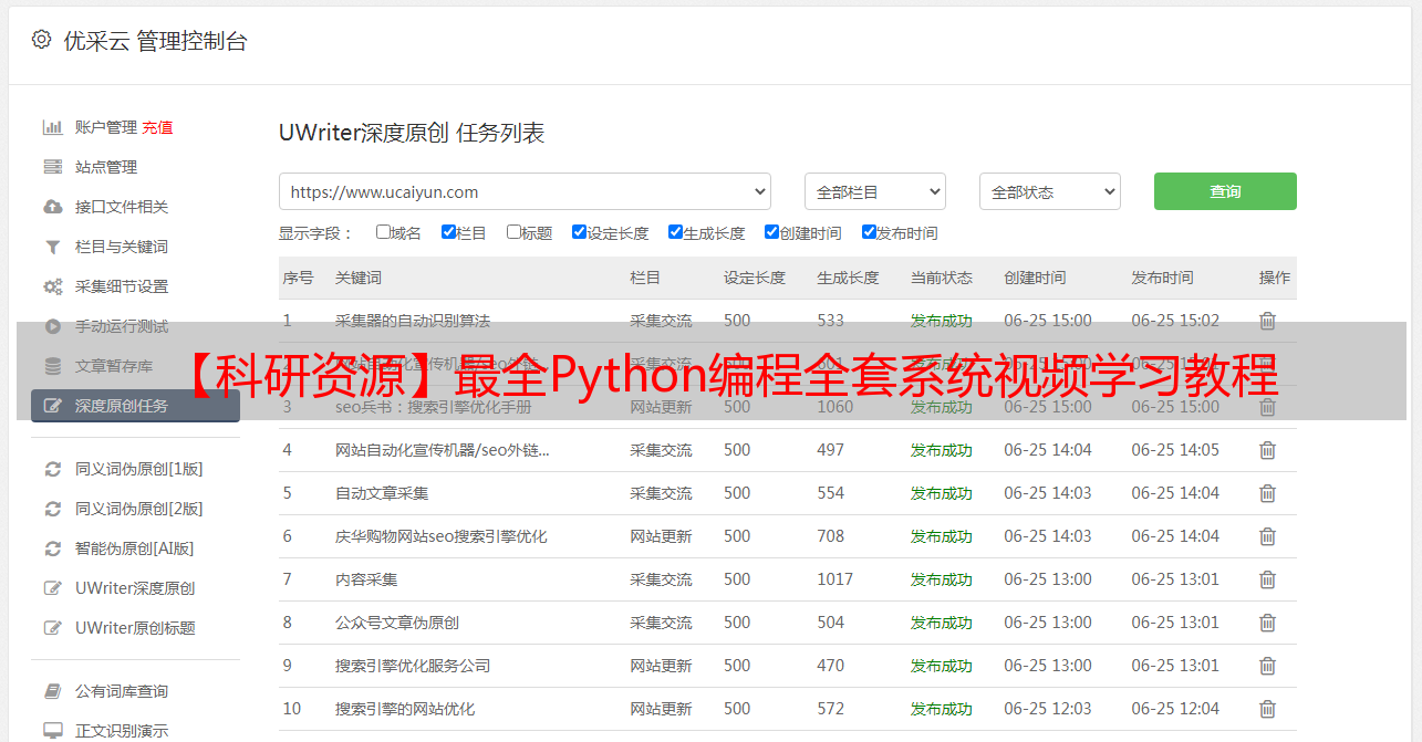 优采云 发布时间: 2022-07-13 23:02【科研资源】最全Python编程全套系统视频学习教程