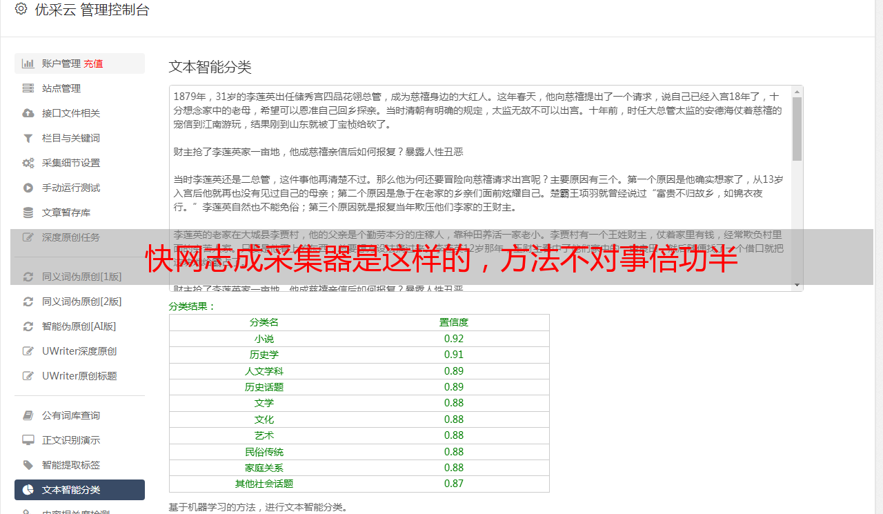 优采云 发布时间: 2022-07-14 04:01快网志成采集器是这样的,方法不对事倍功半
