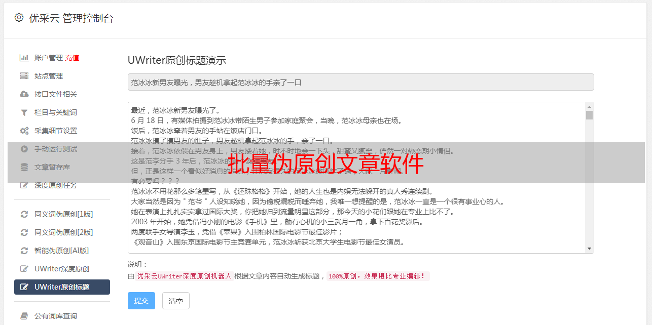 优采云 发布时间: 2022-07-14 10:39批量伪原创文章软件