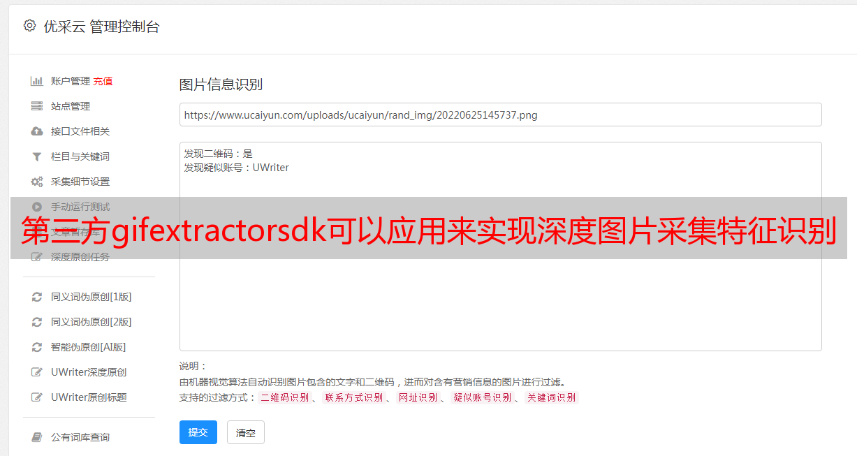 优采云 发布时间: 2022-07-17 00:02第三方gifextractorsdk可以应用来实现深度图片采集特征识别