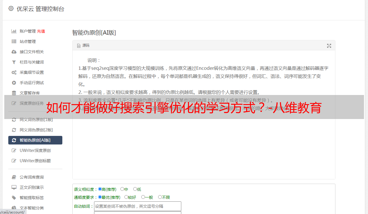 优采云 发布时间: 2022-07-17 17:04如何才能做好搜索引擎优化的学习方式?-八维教育