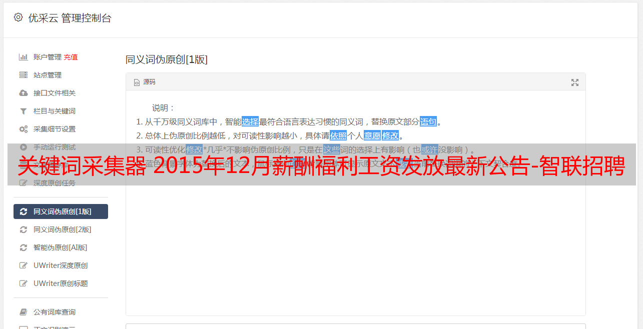 关键词采集器 2015年12月薪酬福利工资发放最新公告-智联招聘