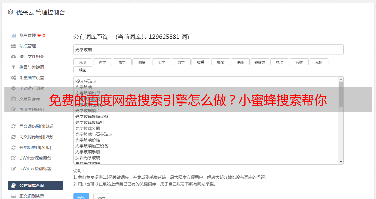 优采云 发布时间: 2022-07-19 20:02免费的百度网盘搜索引擎怎么做?小蜜蜂搜索帮你