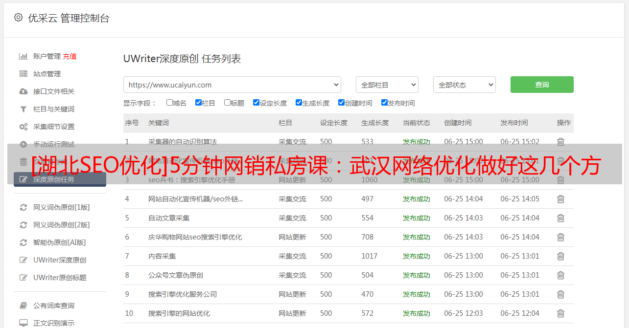 优采云 发布时间: 2022-07-20 09:31[湖北SEO优化]5分钟网销私房课:武汉网络优化做好这几个方面很关键