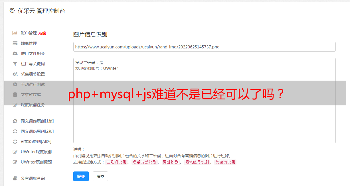 优采云 发布时间: 2022-07-20 13:04php+mysql+js难道不是已经可以了吗?