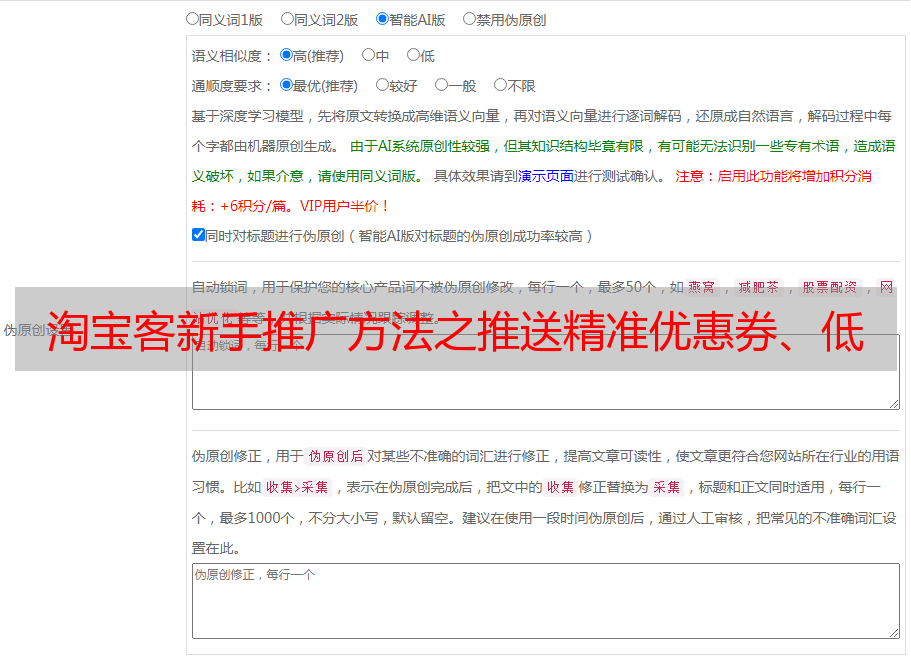 在线伪原创检测,您只需要一台电脑,几十块钱就可以。*敏*感*词*新手推广方法之推送精准优惠券、低价团购!当别人进入你的网站获取到你网站的优惠券链接,你就可以推送给买家,买家买到合适的商品就可以领到相应的奖励!我们也可以成为:*敏*感*词*推广方法。同理,*敏*感*词*推广的方法还有很多,大家可以互相交流。