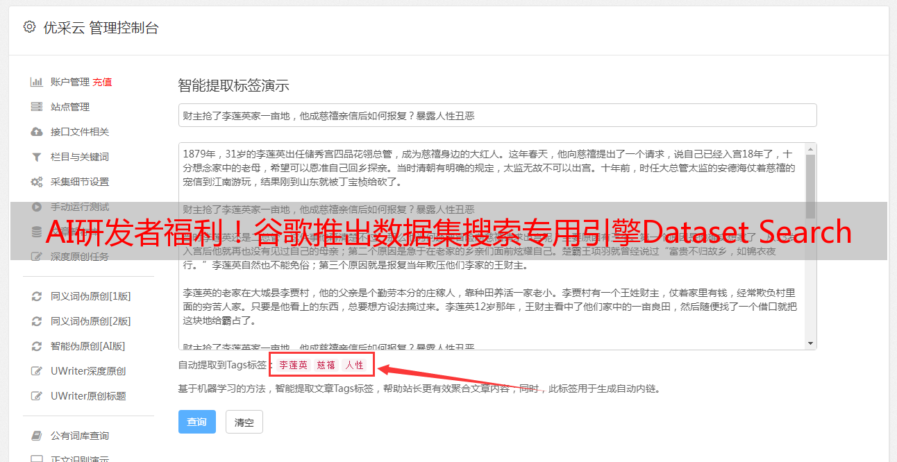 优采云 发布时间: 2022-07-22 10:21AI研发者福利!谷歌推出数据集搜索专用引擎Dataset Search