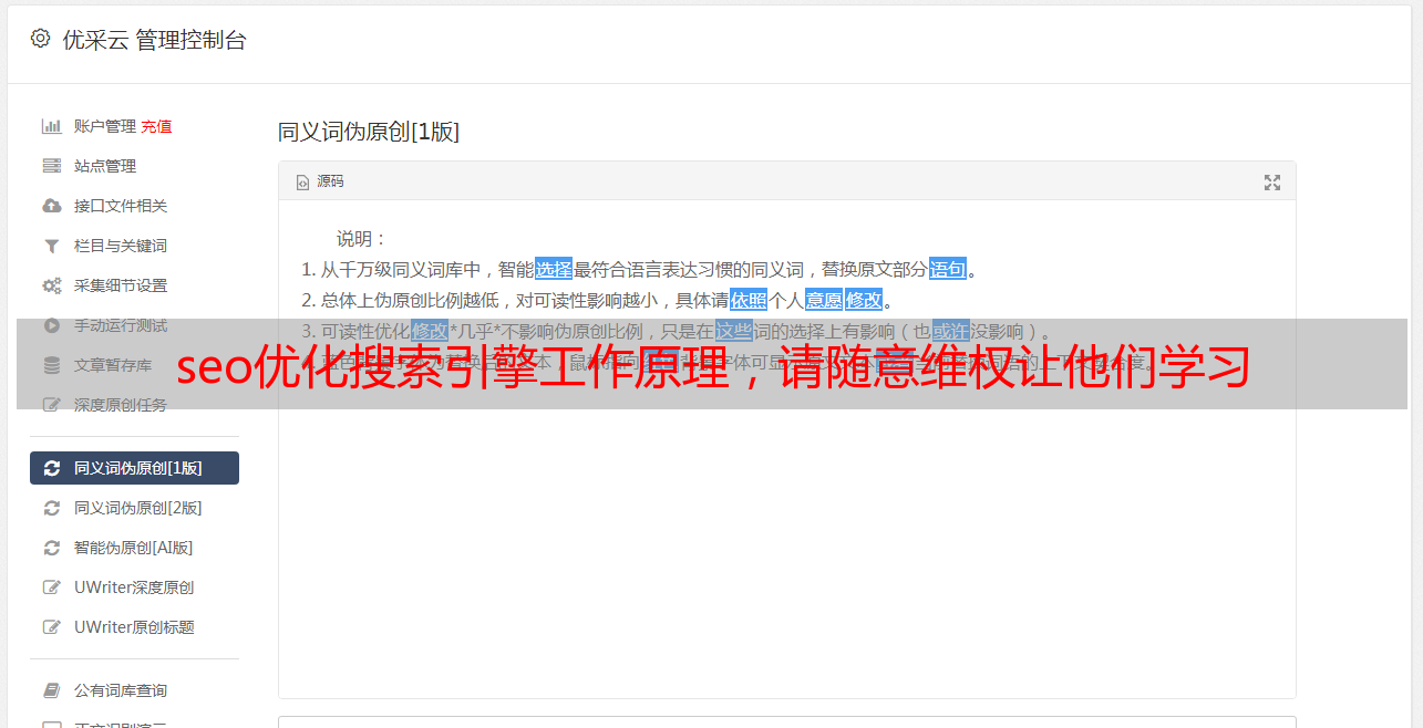 优采云 发布时间: 2022-07-22 19:00seo优化搜索引擎工作原理,请随意维权让他们学习