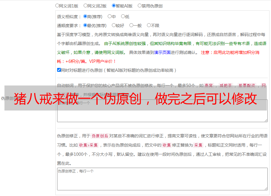 猪八戒来做一个伪原创,做完之后可以修改内容